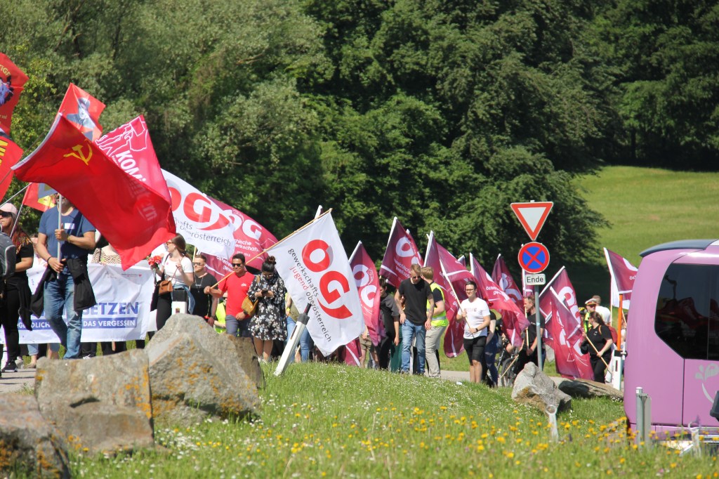 Anlässlich der 77. Wiederkehr der Befreiung des KZ-Mauthausen fand auch im Jahr 2022 die internationale Befreiungsfeier in Form eines Gedenkzuges mit unbegrenzter TeilnehmerInnenzahl in der KZGedenkstätte Mauthausen statt.