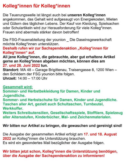 mehr Infos findest du am Infoblatt – wenn du deine Spenden bis spätestens Freitag, 24. Juni 2022 Mittag bei mir in der Hans Radl Schule abgibst bringe ich sie gesammelt nächste Woche zur Sammelstelle.