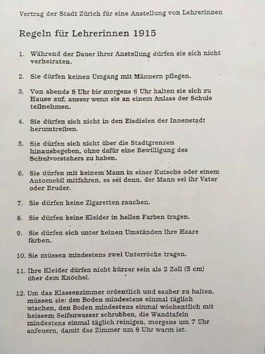 Die Konkurrenz war groß und die Schulbehörden konnten es sich leisten, schärfere Bedingungen zu diktieren. Dass sie Lehrerinnen den Umgang mit Männern untersagt haben sollen, könnte auf die damalige Angst vor einem Sittenverfall und Kontrollverlust an den Schulen hindeuten.