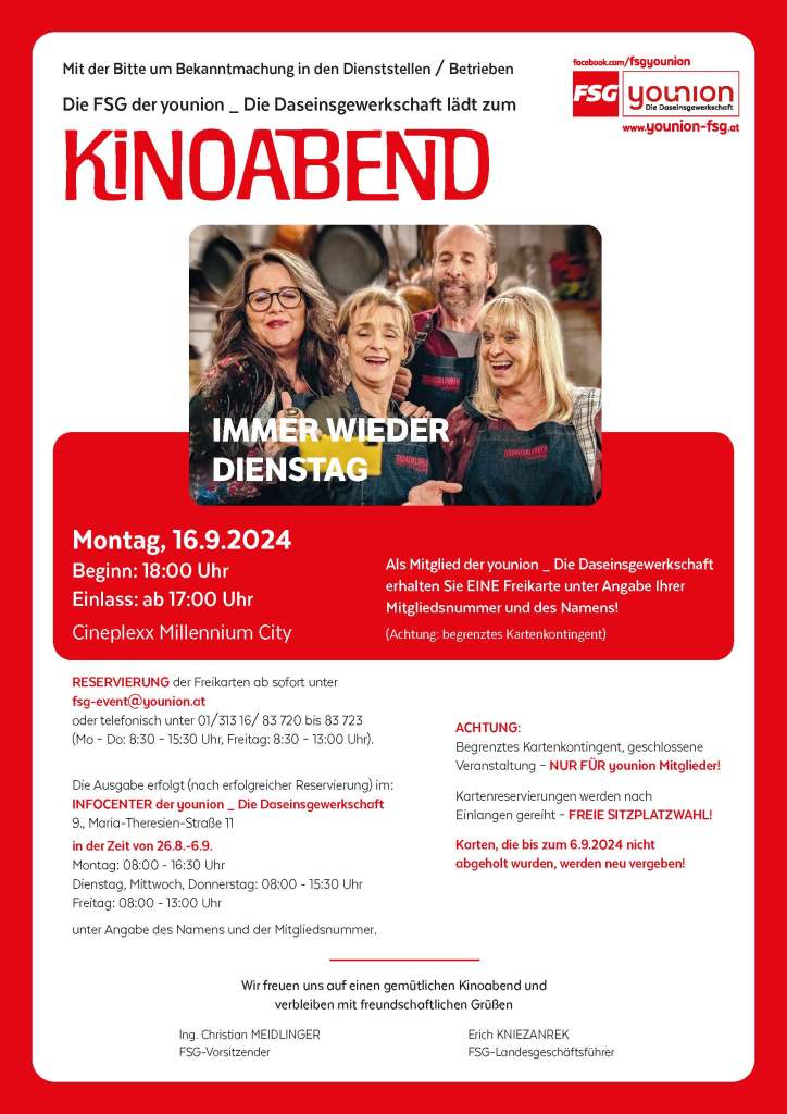 Begrenztes Kartenkontingent, geschlossen Veranstaltung – NUR FÜR younion MITGLIEDER!