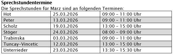 Hier die Sprechstunden für das Monat März: