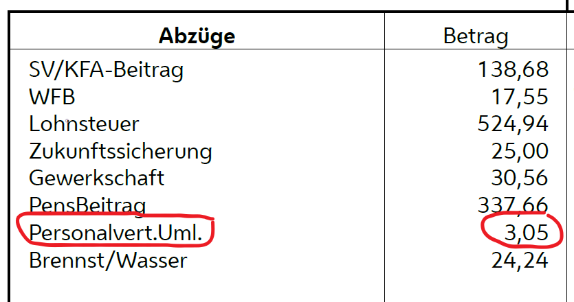 Ein Blick auf deinen Lohnzettel wird dir zeigen, dass dir monatlich die Personalvertretungsumlage in der Höhe von 0,1% abgezogen wird.